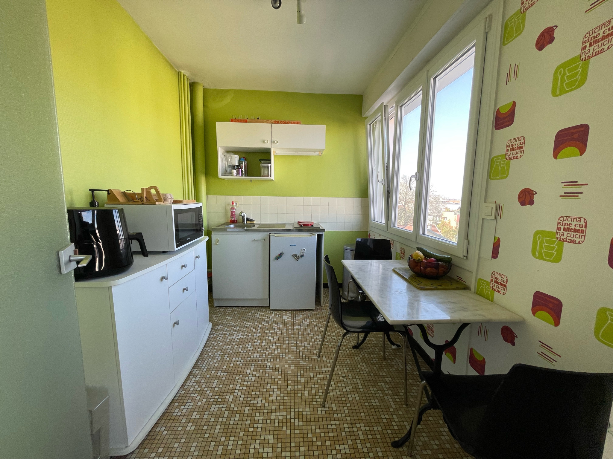 Madame Immobilier vous présente ce Studio lumineux, 25.80M2 quartier Dauphinot, une belle pièce principale avec rangements, cuisine séparée, salle de bains avec baignoire et Wc, 3ème étage avec ascenseur, cave, résidence sécurisée, appartement calme côté cour. Faibles charges.