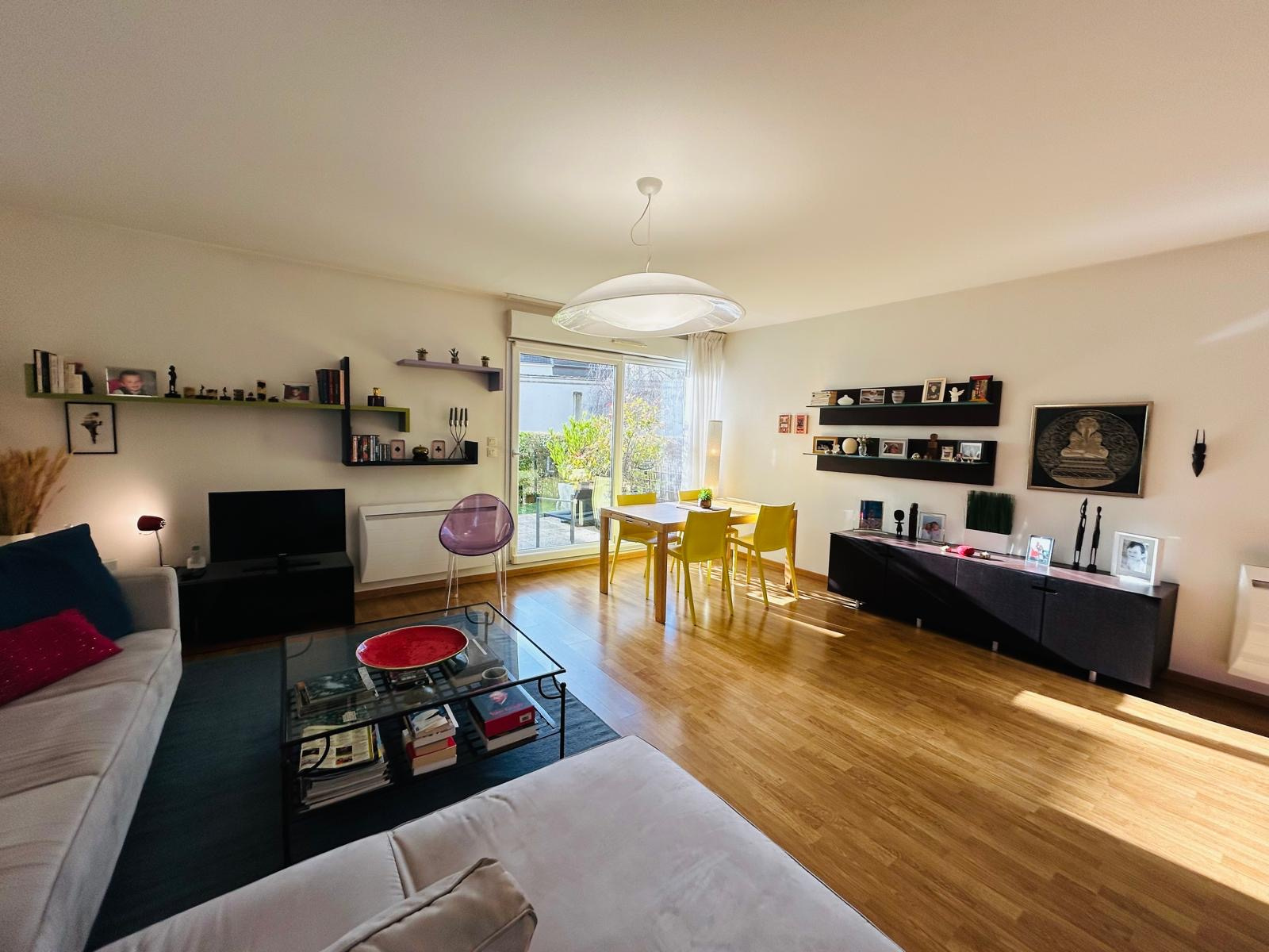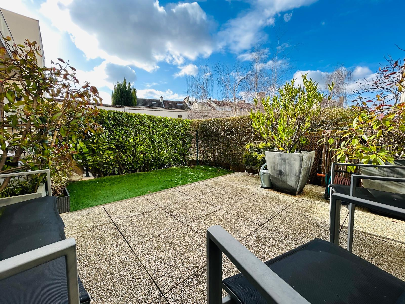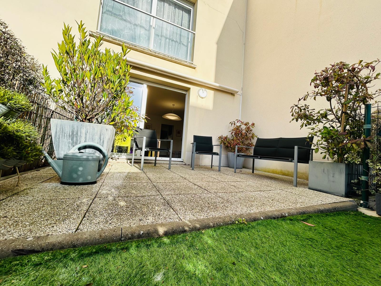 RARE : cet appartement possède une terrasse de 26.90 m2 et un jardin de 64.10 m2. Résidence de belle catégorie.