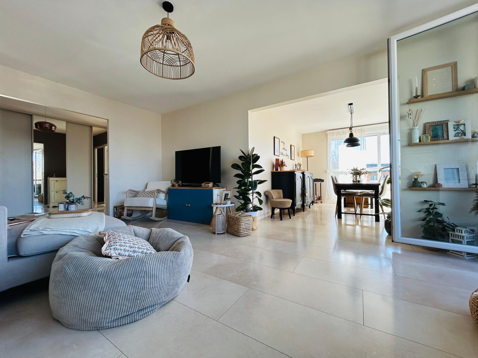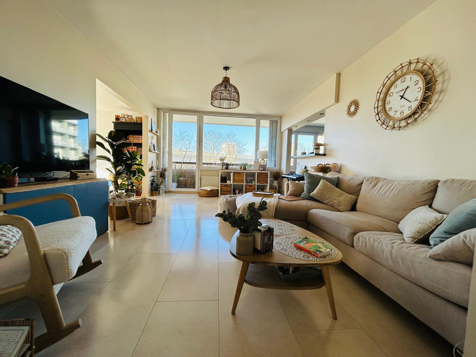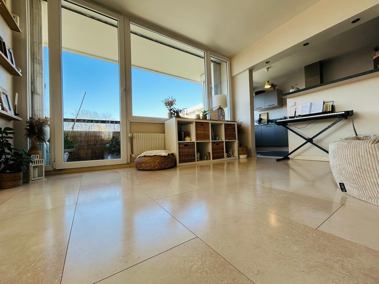 Madame Immobilier vous présente cet appartement situé à 20 minutes de la place du forum. Belle surface de vie rénovée entièrement offrant vaste entrée, très agréable séjour double, cuisine équipée semi-ouverte, lingerie, salle de douche , wc indépendant et deux chambres.