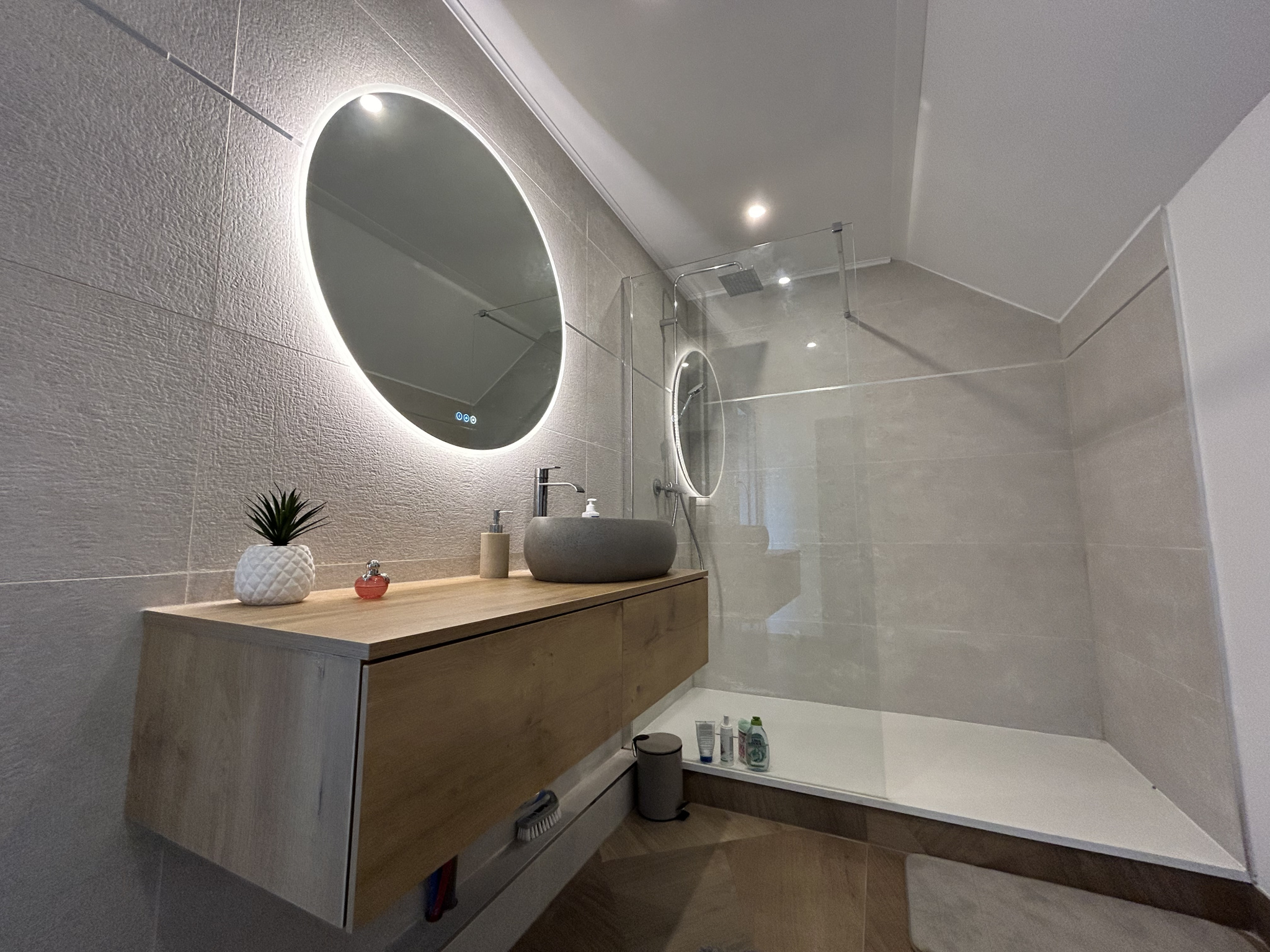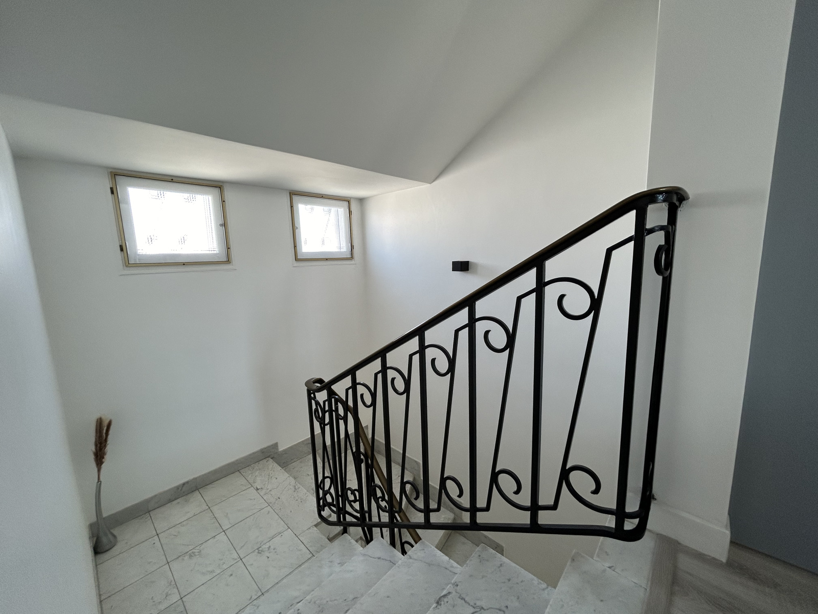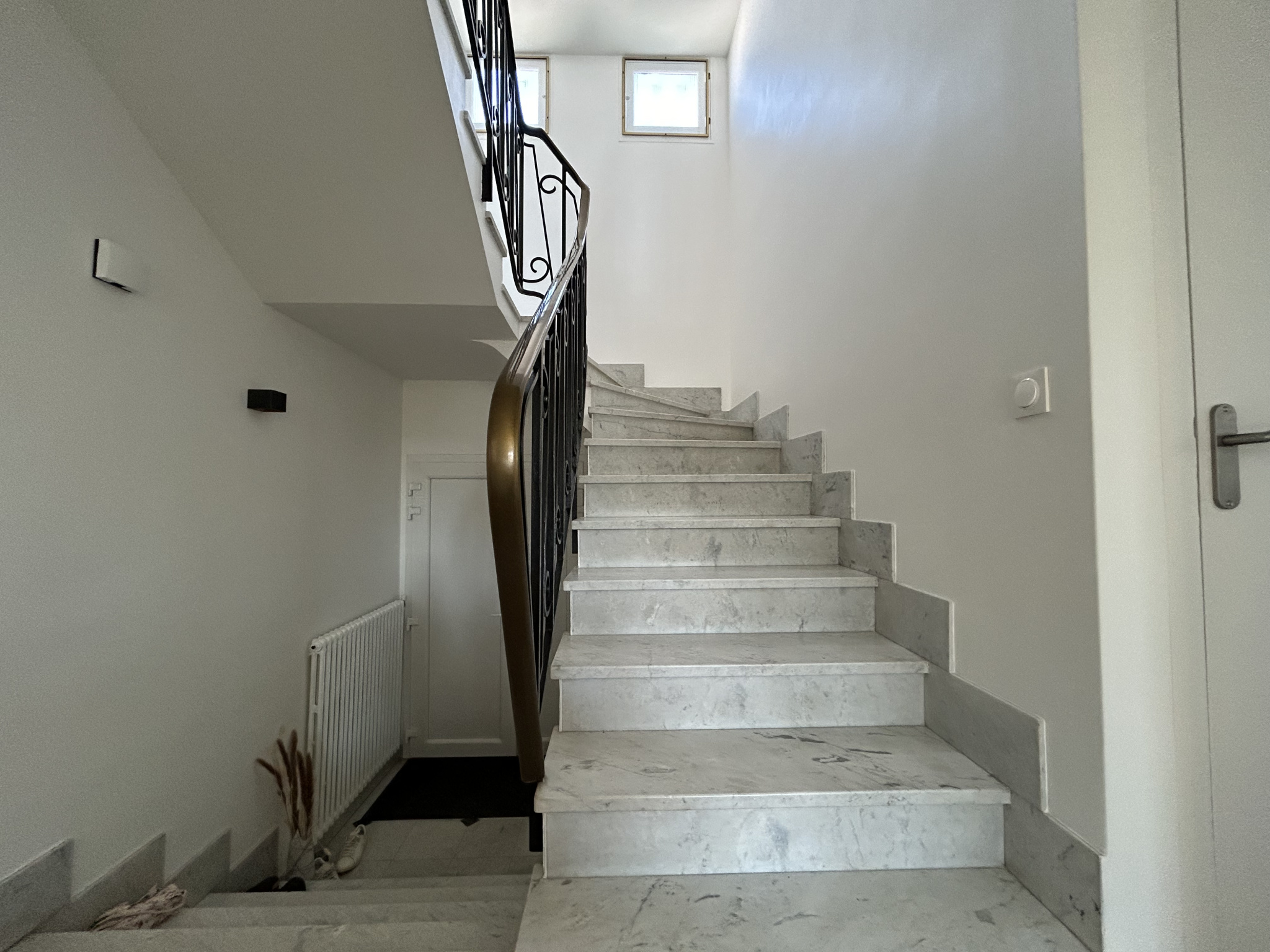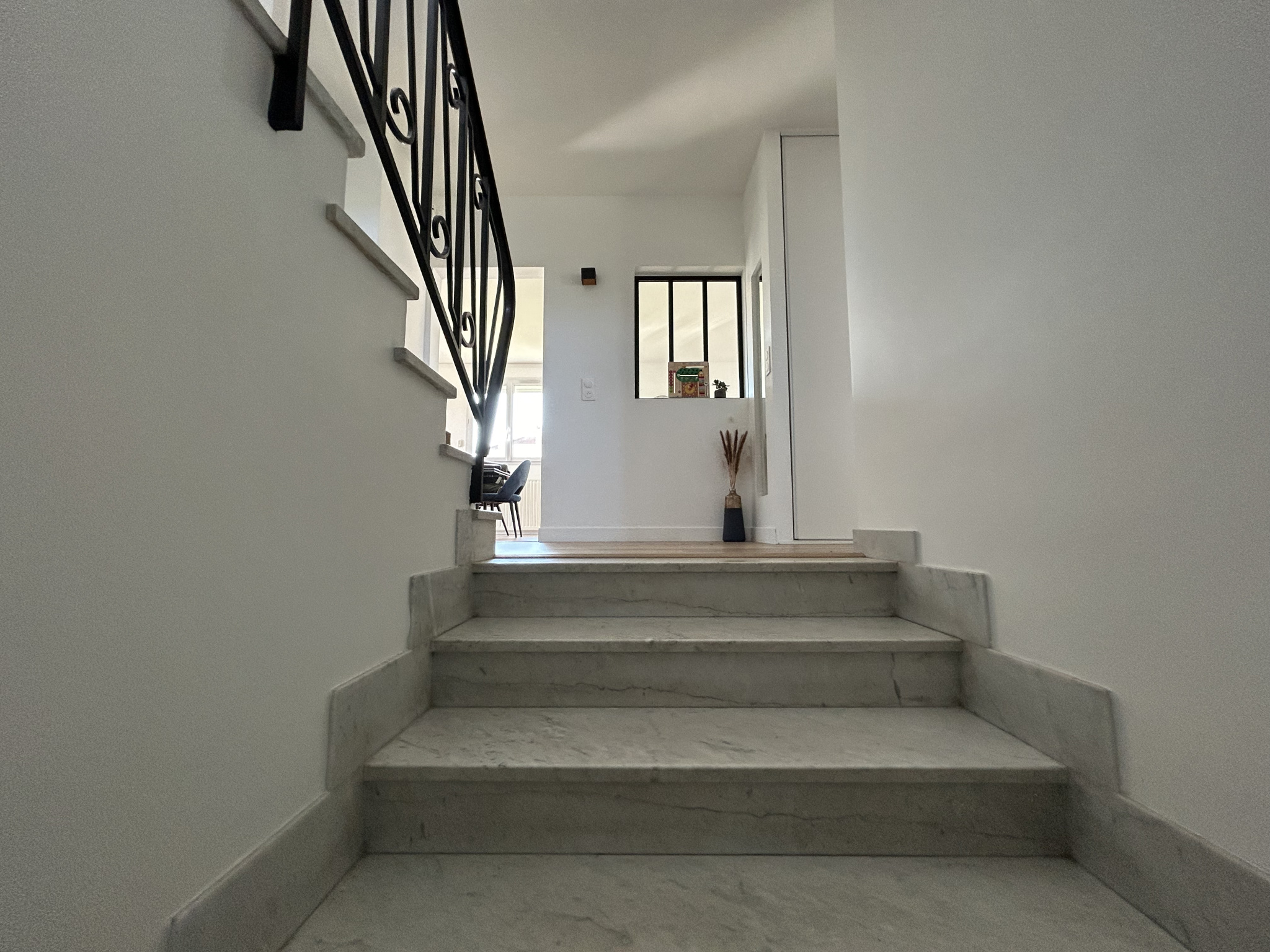 Un bel escalier en marbre distribue l'espace nuit avec 2 belles chambres et une salle d'eau et un espace dressing.