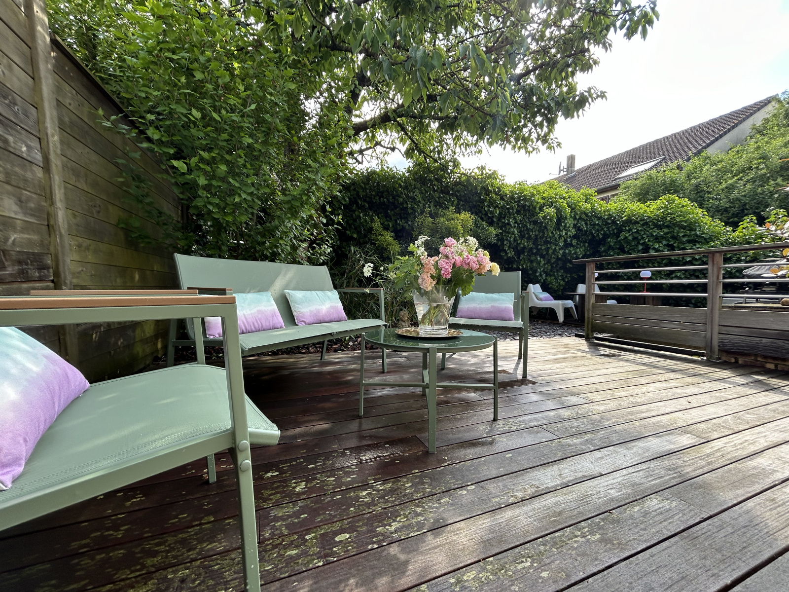Maison offrant réel confort avec cheminée, climatisation réversible de qualité, terrasse en bois avec jardin arboré exposée sud, cave, pas de travaux à prévoir (salle de bains récente). Contactez-nous !