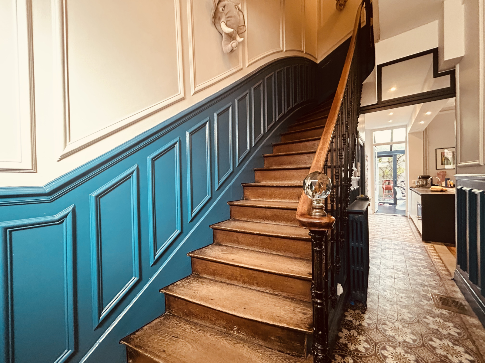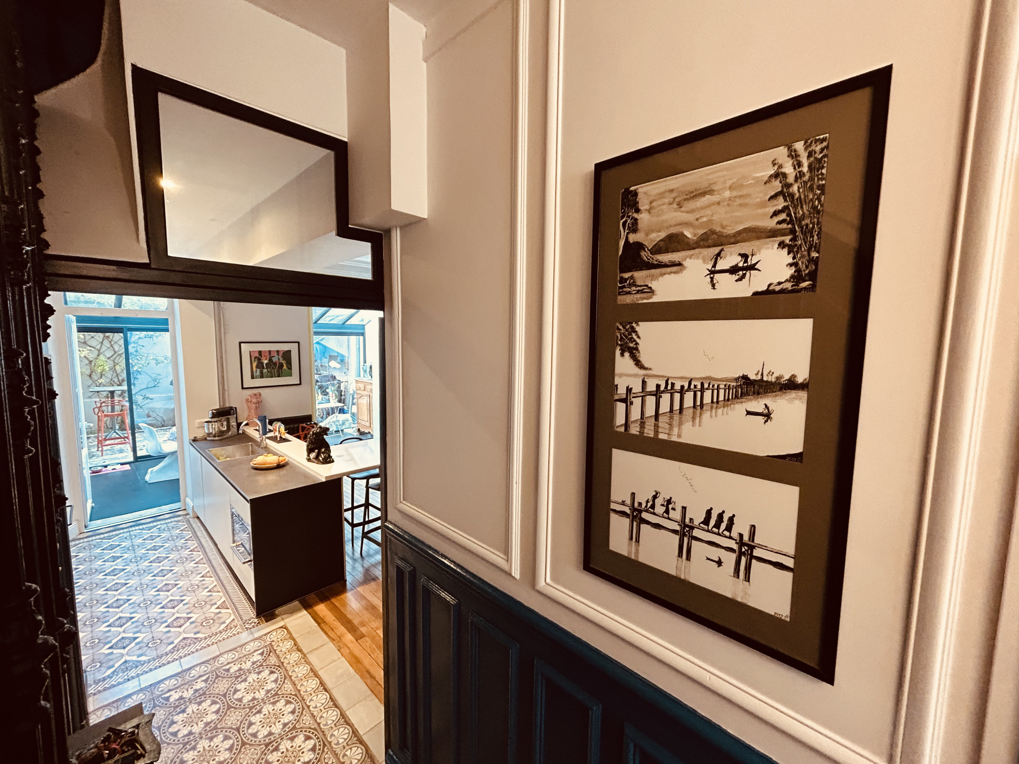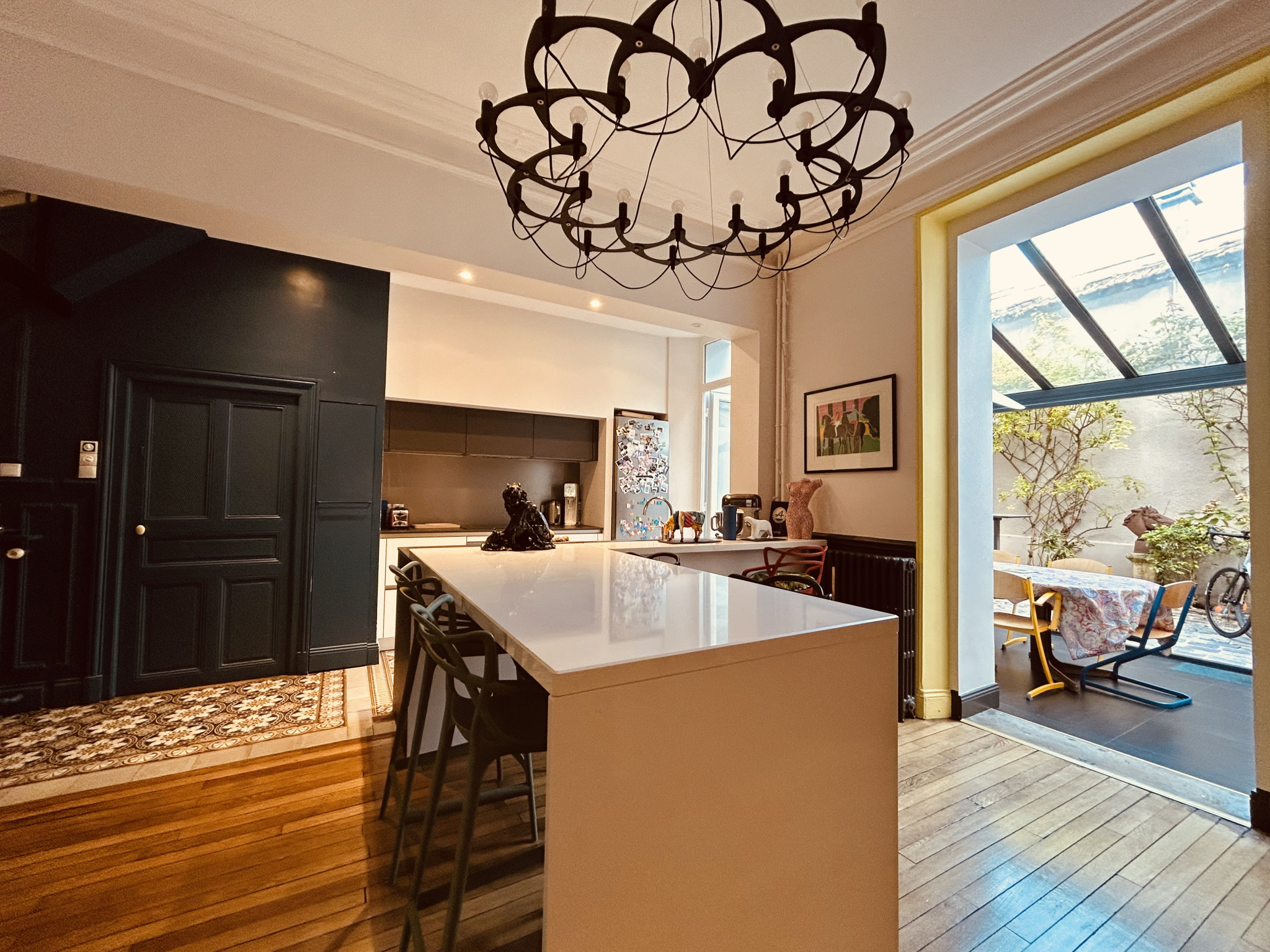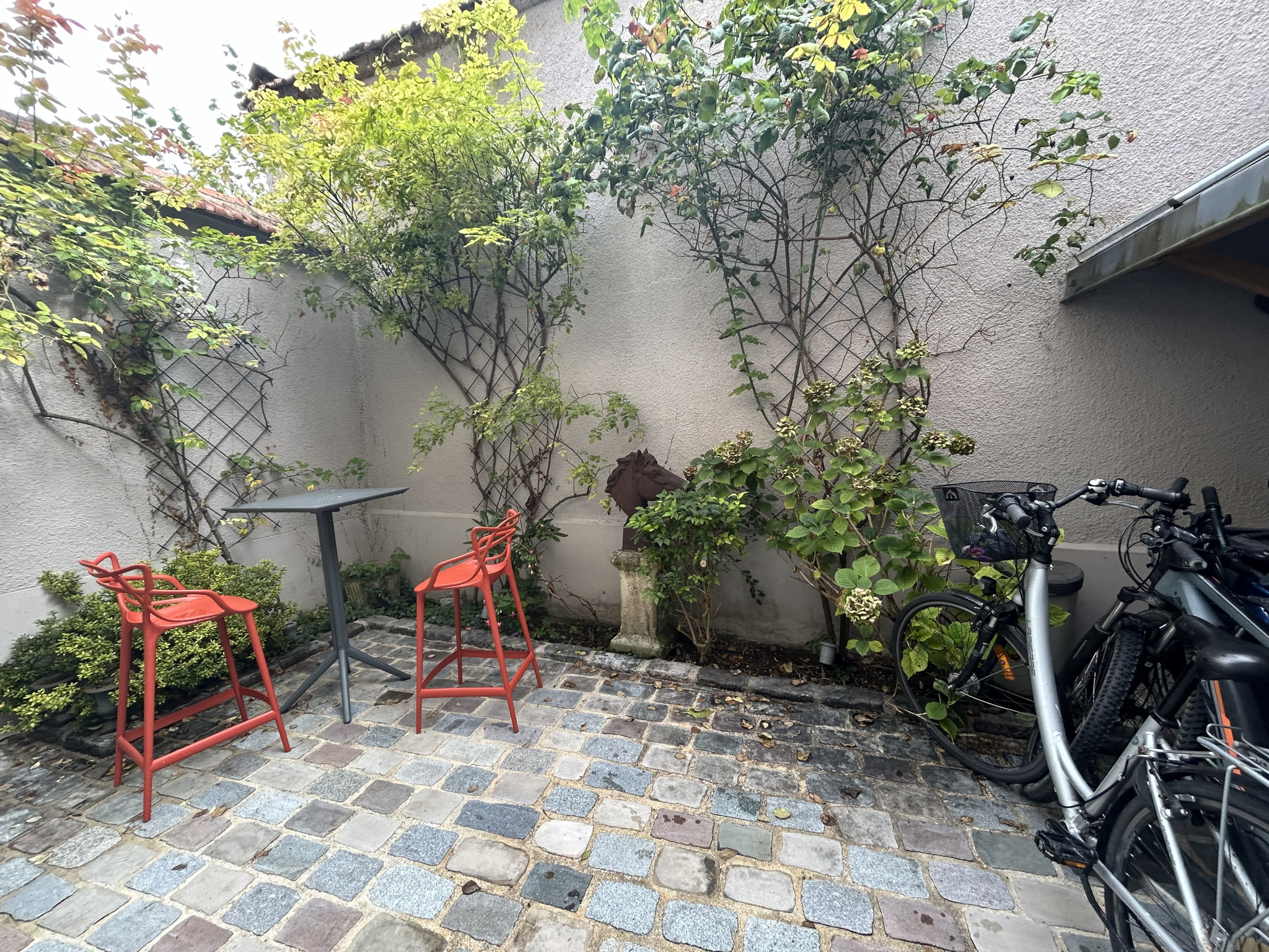 Jolie cour pavés, cave et garage en location à proximité.
