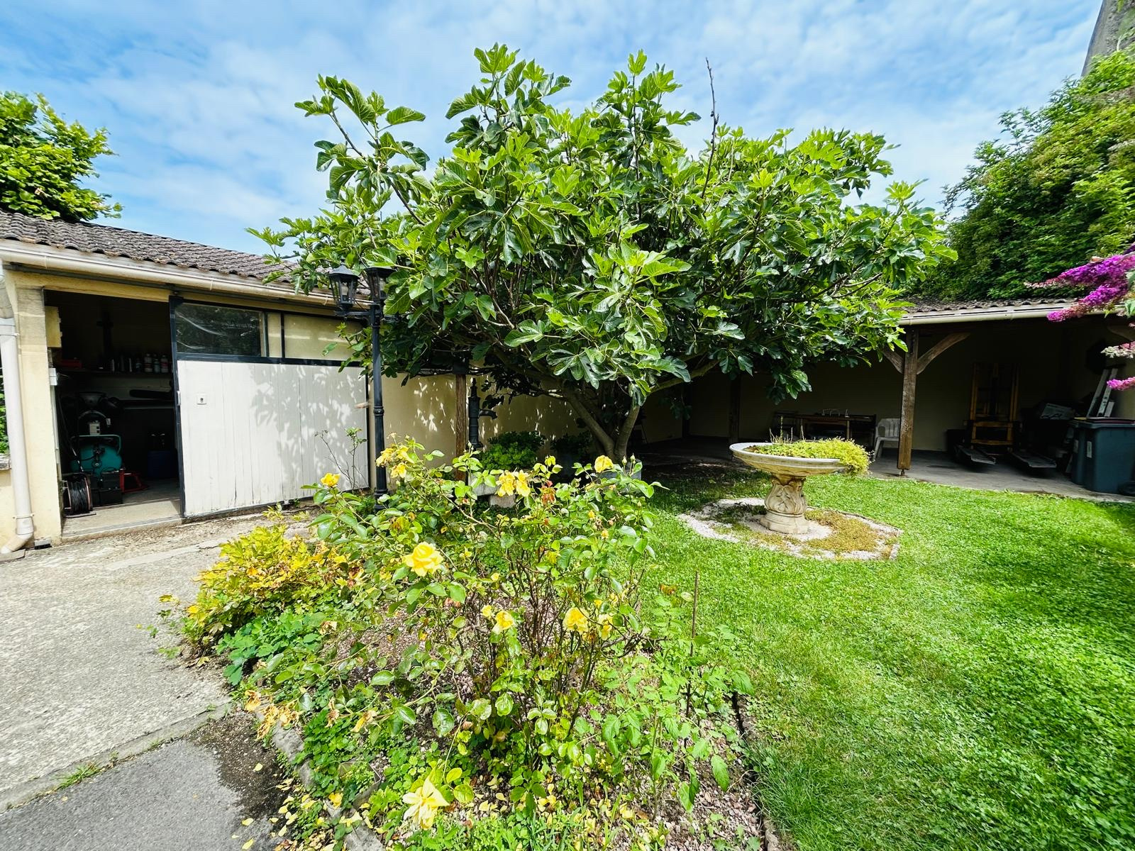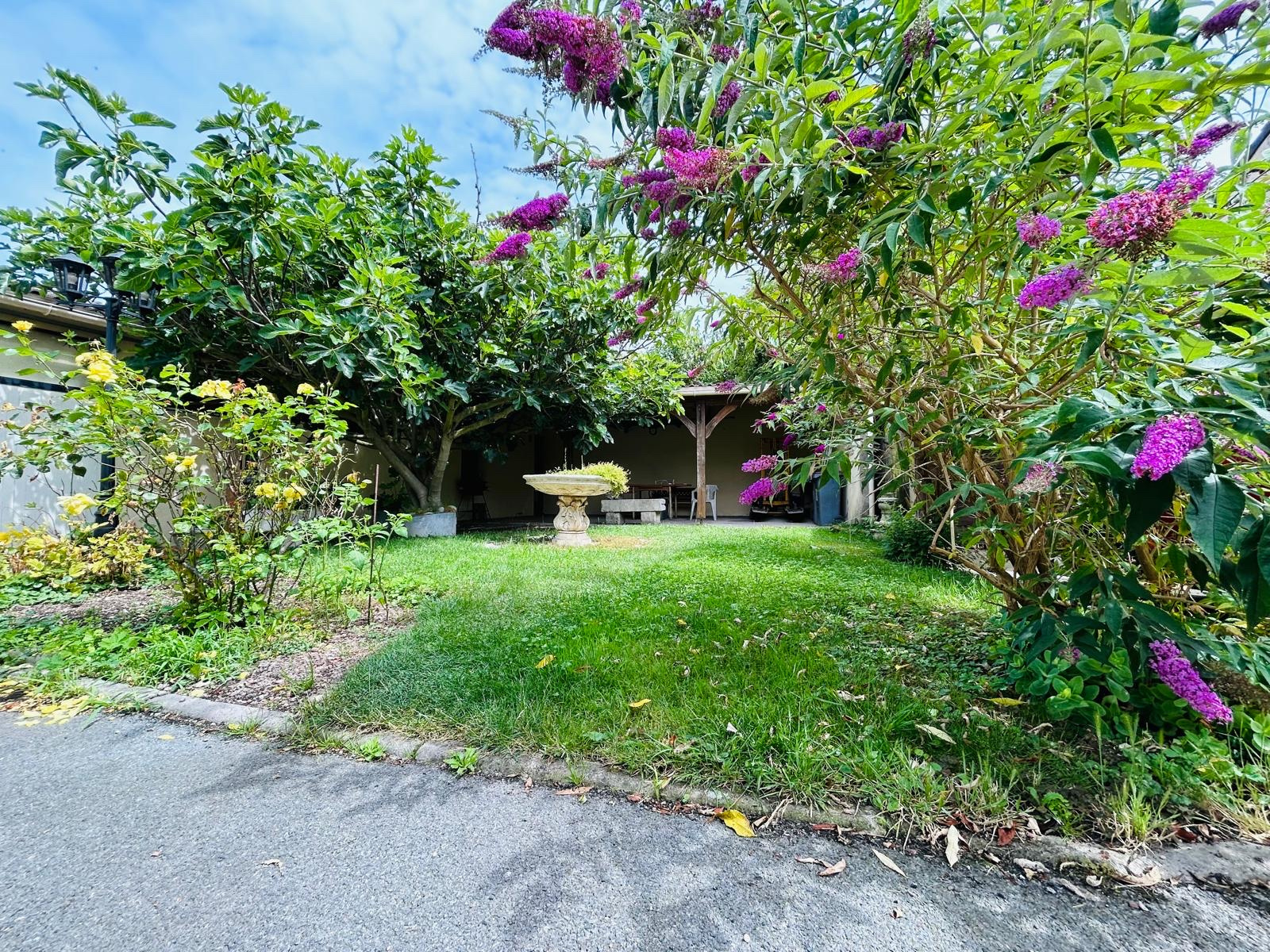 Beau jardin arboré sans vis à vis avec terrasse couverte, un atelier, une pièce de stockage.