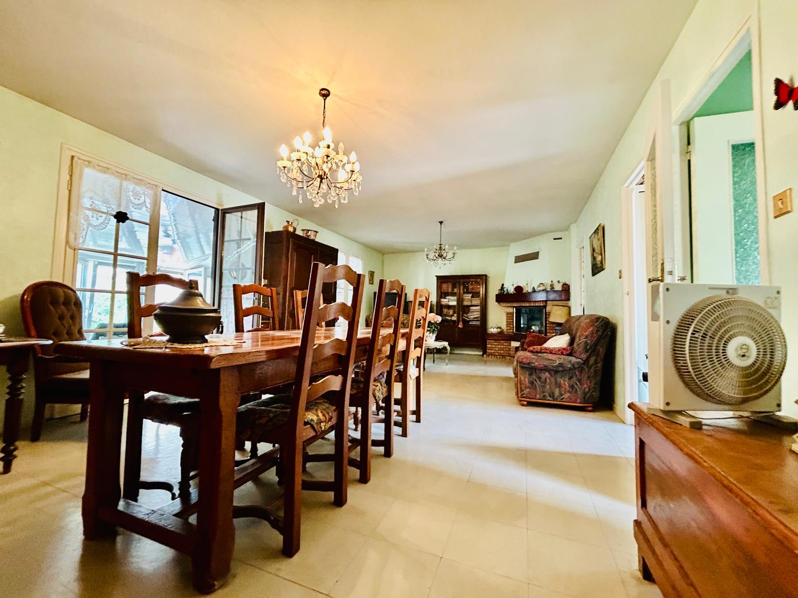Maison indépendante avec vie de plain-pied, belle pièce de vie avec cheminée ouvrant sur une véranda avec vue sur le joli jardin fleuri. Cuisine séparée avec coin repas.
